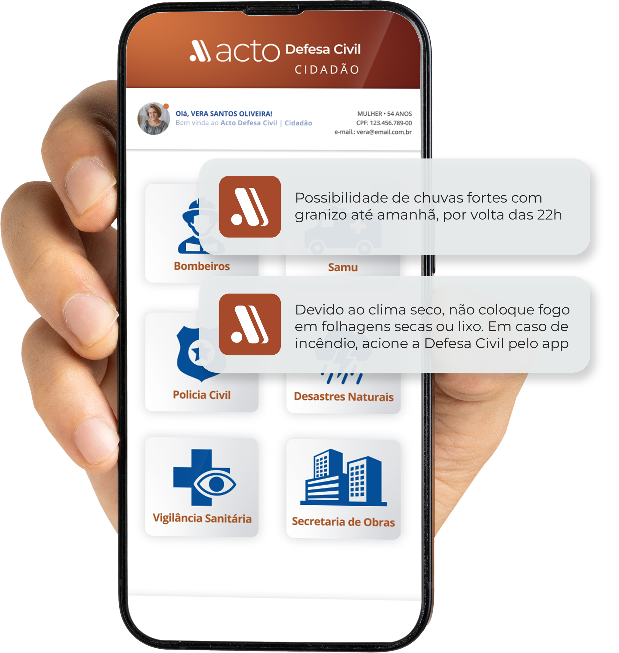 Acto Defesa Civil é a solução de parceria entre Defesa Civil e a população para garantir um ambiente seguro, enviando alertas a todos em situações de emergência
